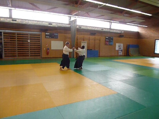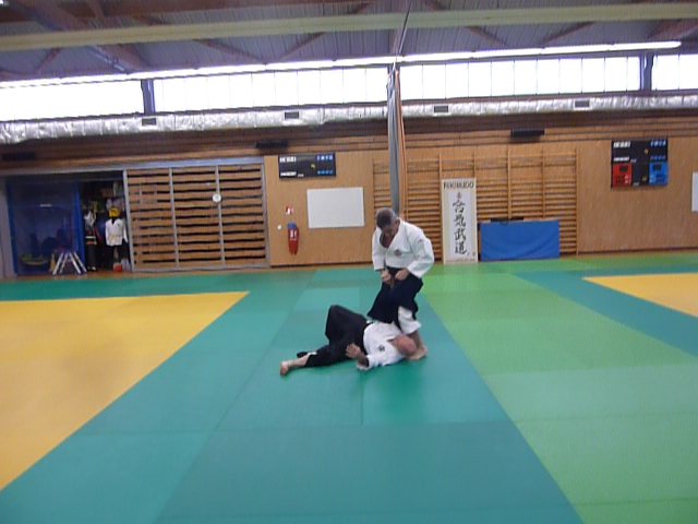 Les pratiquants ont pu travailler diverses facettes de notre art telles que plusieurs techniques sur déplacement latéral Hiraki, une série de dégagement sur divers types de Nigiri Gaeshi enchainés par de multiples techniques exécutées à trois en Futari Dori Waza. Le travail des armes Buki Dori a lui aussi été mis à l’honneur avec la révision de Tanto no Kata et l’exécution de diverses techniques de dégagement sur couteau avec contrôle de l’arme et du partenaire en Osae Waza. Pour finir quelques techniques de Daito Ryu ont été présentées, animé par Emmanuel Clérin.